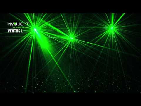 INVOLIGHT VENTUS L – многолучевой светодиодный прибор 3 в 1 клубной серии, создающий динамичные световые эффекты красного, зеленого, синего и белого цветов, плюс строб-эффект, плюс лазерный эффект красного и зеленого цветов. В качестве источников света используются четыре 4-цветных (RGBW) светодиодных мультичипа по 3 Вт, шестнадцать белых светодиодов по 0,5 Вт на фронтальной поверхности и два лазерных излучателя красного (100 мВт) и зеленого (50 мВт) цветов. При подключении DMX-контроллера можно управлять направлением, скоростью вращения и цветом лучей, усиливать визуальные эффекты стробом с переменной частотой вспышек, а также выбирать программы лазера.