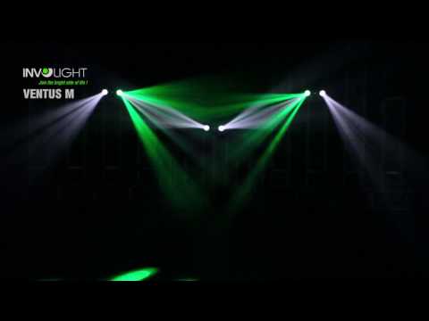 INVOLIGHT VENTUS M – многолучевой светодиодный прибор 3 в 1 клубной серии, создающий динамичные световые эффекты красного, зеленого, синего и белого цветов, плюс строб-эффект, плюс лазерный эффект красного и зеленого цветов. В качестве источников света используются 66 (RGBW) светодиодов, двенадцать белых светодиодов по 1 Вт на фронтальной поверхности и два лазерных излучателя красного (100 мВт) и зеленого (50 мВт) цветов. При подключении DMX-контроллера можно управлять направлением, скоростью вращения и цветом лучей, усиливать визуальные эффекты стробом с переменной частотой вспышек, а также выбирать программы лазера.