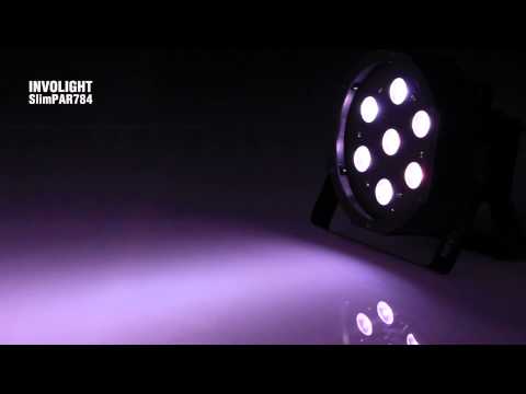 INVOLIGHT SLIMPAR 784 – компактный светодиодный прожектор. 7 четырехцветных (RGBW) светодиодных мультичипов мощностью 8 Вт, угол раскрытия луча 45°. Управление: DMX-512, мастер/ведомый, звуковая активация, автоматический режим.